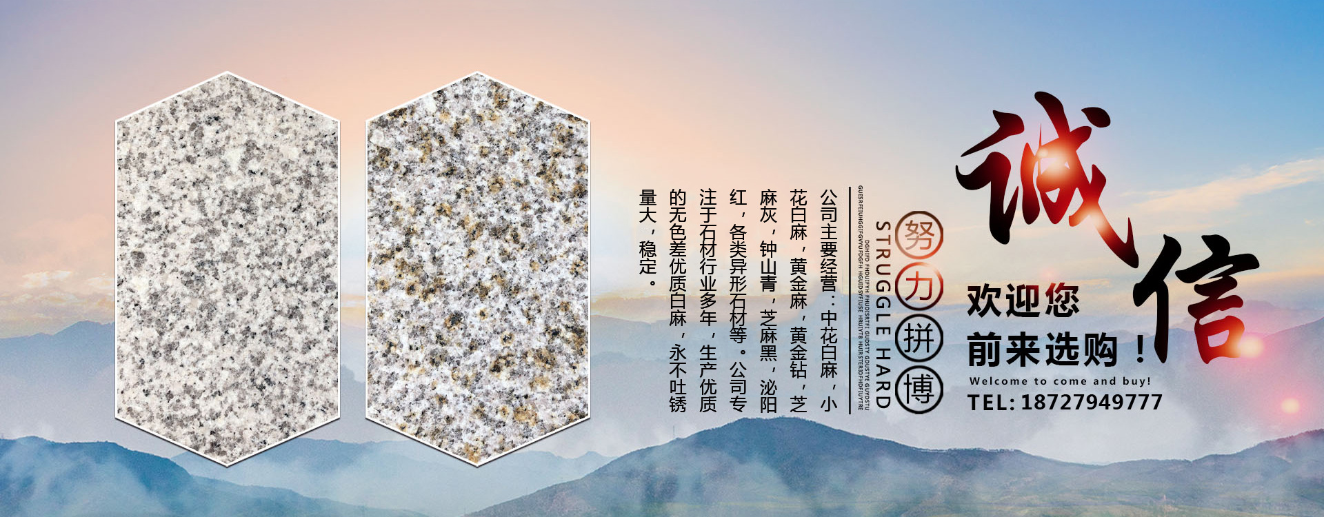 我廠主要經(jīng)營(yíng)中花白麻,小花白麻,黃金麻,黃金鉆,芝麻灰,鐘山青,芝麻黑,泌陽(yáng)紅,各類異形石材等;類目繁多。